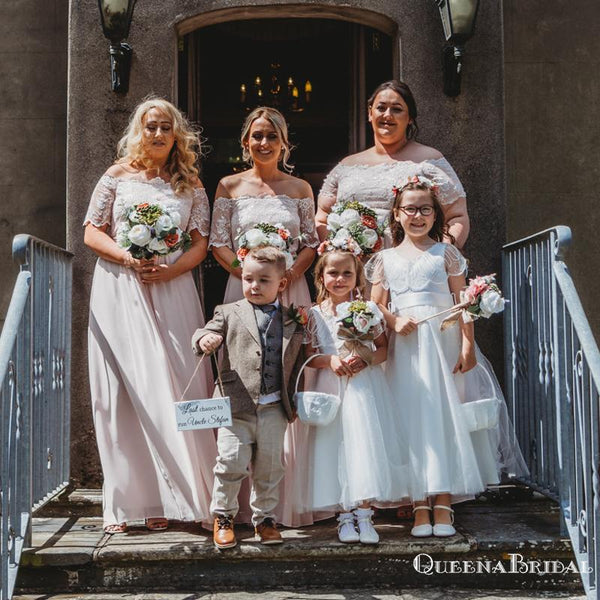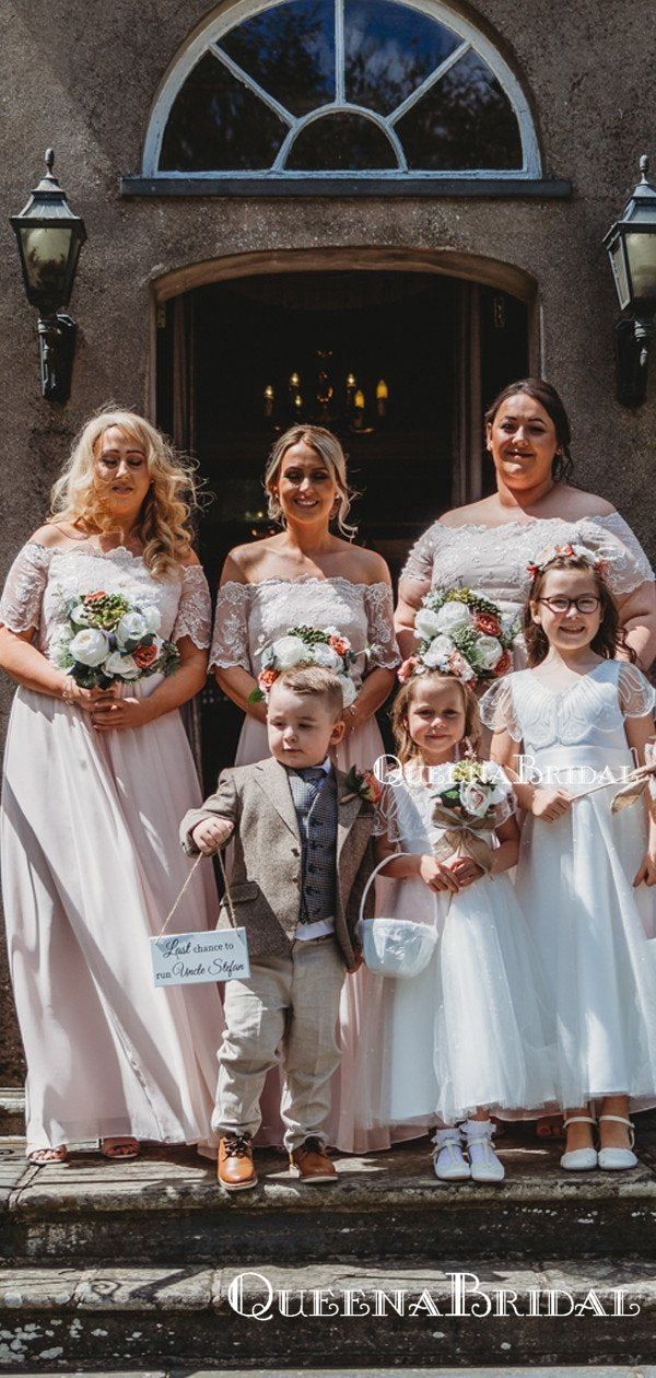 Charming Off-The-Shoulder Half-Sleeves Blush Pink Chiffon Long Cheap Bridesmaid Dresses, BDS0059