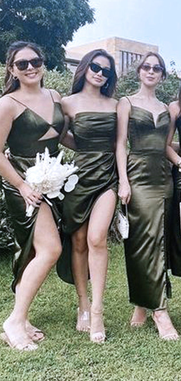 Mismatched Dark Green Soft Satin Mermaid Long Cheap Elegant Bridesmaid Dresses, BDS0160