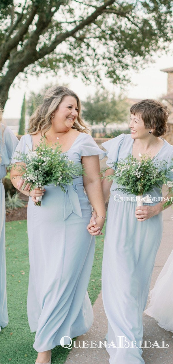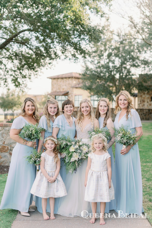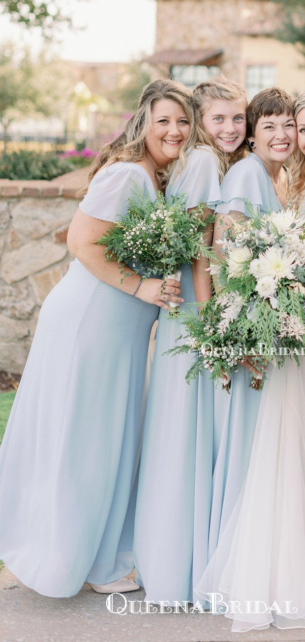 Mismatched Light Blue Chiffon A-line Long Cheap Floor-Length Bridesmaid Dresses, BDS0030