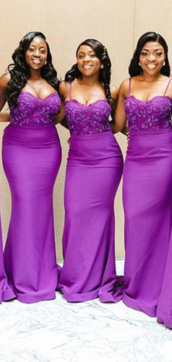 Elegant Dark Purple Satin SDpaghetti Straps Sequin Mermaid Long Cheap Elegant Bridesmaid Dresses , BDS0154