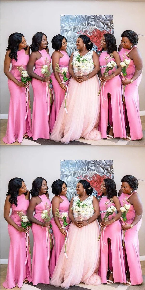 Mismatched Simple Pink Mermaid Cheap Maxi Long Bridesmaid Dresses, BDS0135