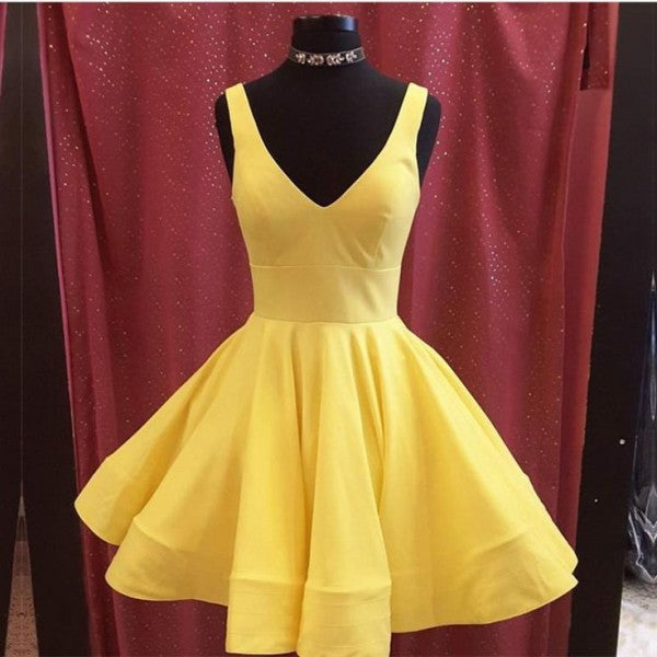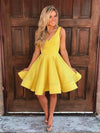 Simple A-Line V-Neck Sleeveless Short Yellow Cheap Homecoming Dresses, QB0042