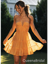 Elegant Orange Halter Tulle Ruffle V Neck A-Line Short Homecoming Dresses, QB0403