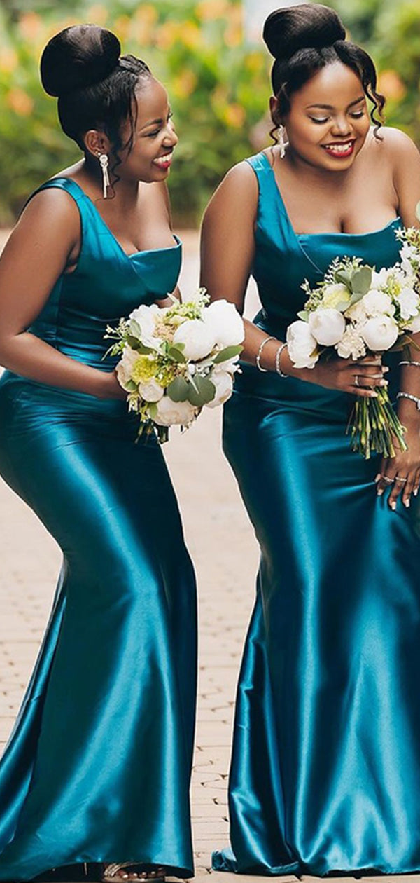 Elegant Blue One Shoulder Mermaid Long Cheap Bridesmaid Dresses ,BDS0169