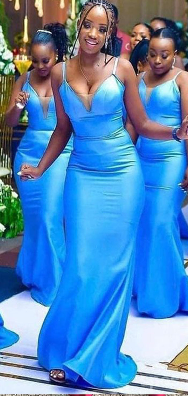 Elegant Blue V Neck Spaghetti Straps Mermaid Simple Long Cheap Bridesmaid Dresses, BDS0188