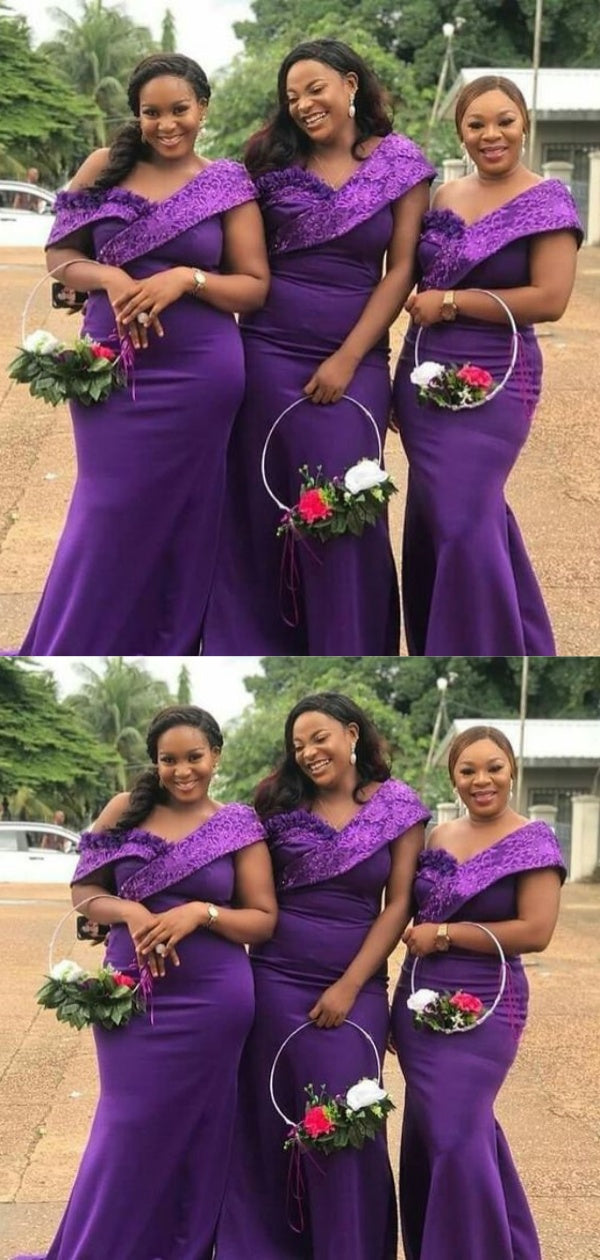 Sexy Unique Off Shoulder Mermaid Appliques Long Bridesmaid Dresses , B