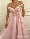 Gorgeous Flowers Beaded V-neck Off Shoulder Long Prom Dresses, QB0545