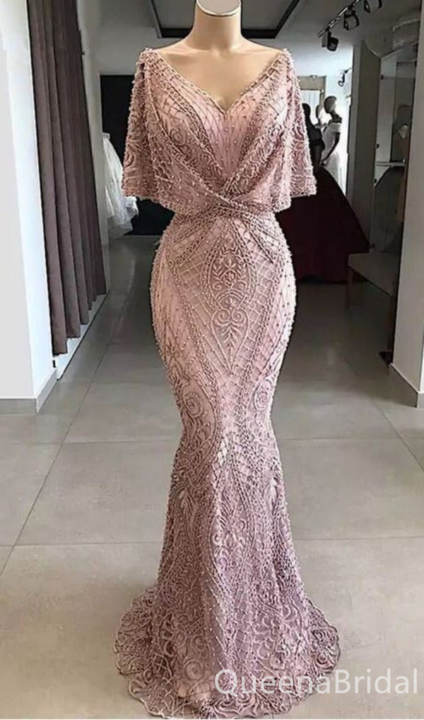 Pink V Neck Mermaid Evening Gown Long Evening Party Prom Dresses ,WGP1242