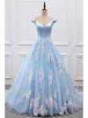 Princess Prom Dresses A-line V-neck Sky Blue Off the Shoulder Quinceanera Dresses, QB0299