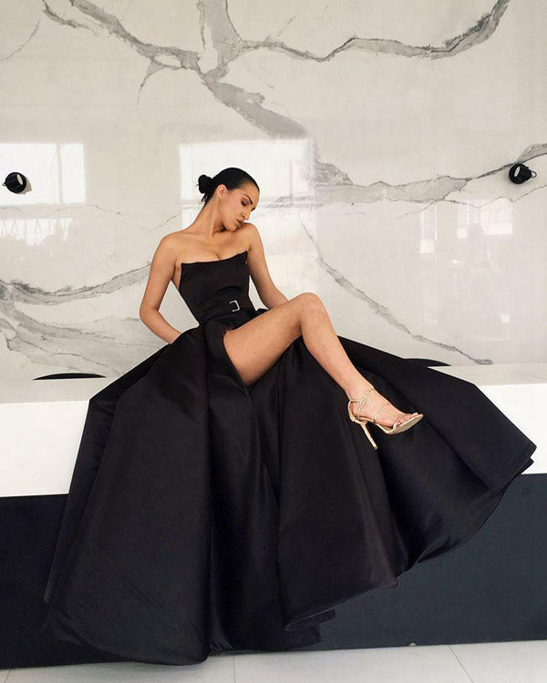 Simple Side Slit Cheap Maroon A-line Long Evening Prom Dresses, QB0423