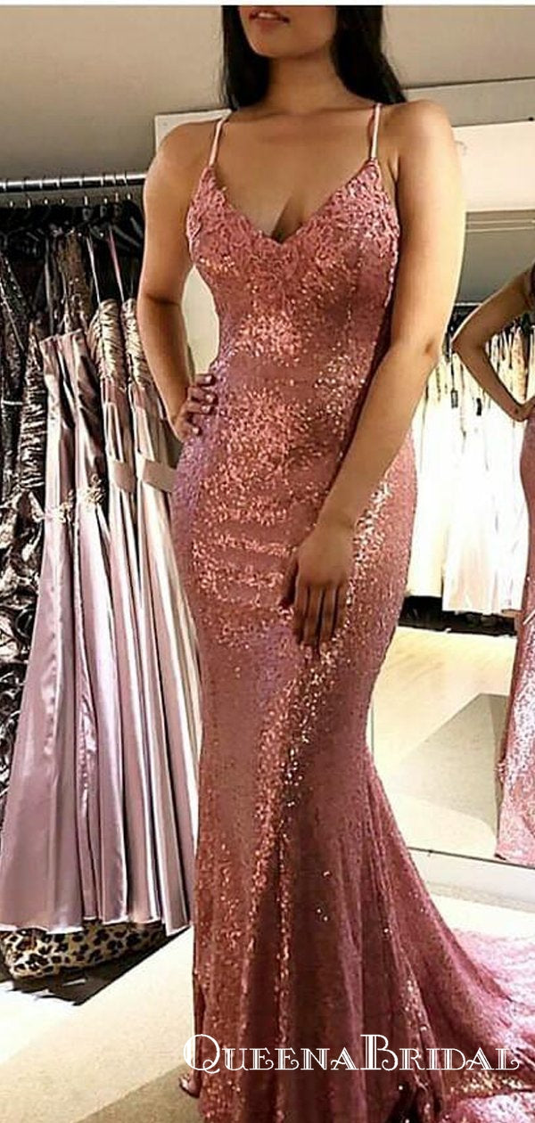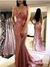 Sparkle Sequined Pink Mermaid Long Cheap Evening Prom Dresses, QB0665