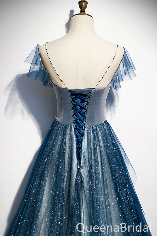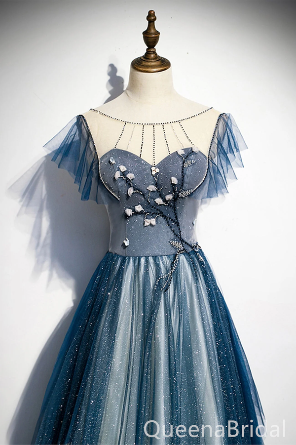 Stylish Embroidery Illusion Lace Up Back A-line Evening Gown Maxi Long Evening Party Prom Dresses,WGP1094