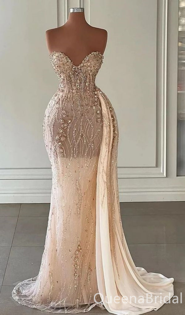 Stylish Pear Pink Strapless Sweetheart Mermaid Evening Gown Long Evening Party Prom Dresses ,WGP1244