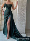 Charming Sexy Beaded Dark Green Sheath Evening Gown Long Prom Dresses with Pleats,WGP739