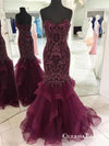 Purple Sweetheart Sleeveless Long Mermaid Prom Dresses With Beaded, QB0758