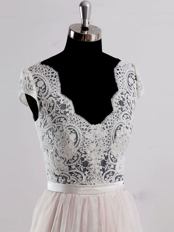 Cap Sleeves V Neck See Through A-line Cheap Wedding Dresses Online, WD342