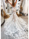 Elegant White Spaghetti Straps V Neck Lace Appliques Mermaid Long Wedding Dresses,WGP208