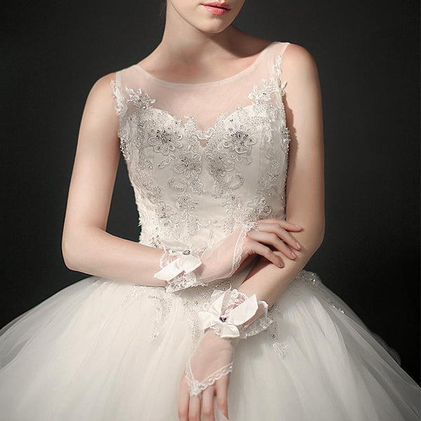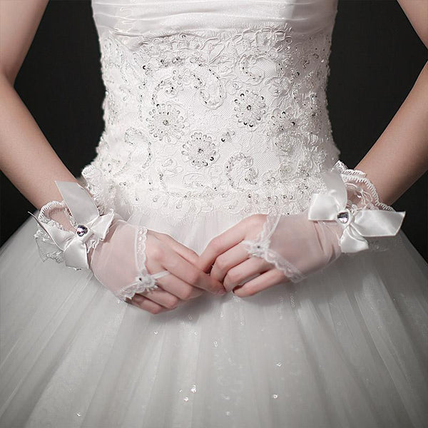 Short Bridal Gloves, White Lace Wedding Gloves, Gloves With Beaded, Lovely Gloves, TYP0565