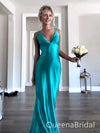 Elegant Teal Satin V-Neck Long Prom Dress - Sleek Mermaid Formal Evening Gown, WGP521